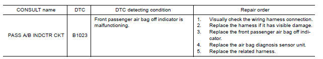DTC B1023 FRONT PASSENGER AIR BAG OFF INDICATOR