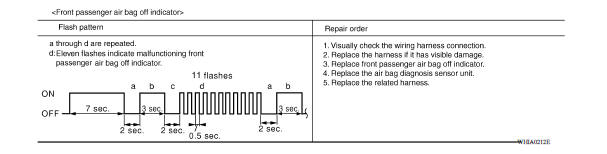 The front passenger air bag off indicator is wired to the air bag diagnosis sensor unit. The air bag diagnosis sensor unit monitors the front passenger air bag off indicator and circuit for failures.