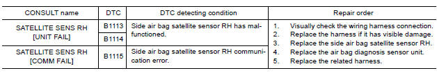DTC B1113 - B1115 SATELLITE SENSOR RH