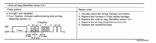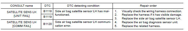Replace the side air bag satellite sensor LH. Refer to SR "Removal and Installation".