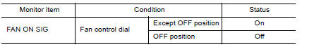 A/C On signalComponent Function Check 1.CHECK A/C ON SIGNAL With CONSULT Turn ignition switch ON. Operate front blower motor. Select "AIR CONDITIONER" of "BCM" using CONSULT. Select "AIR COND SW" in ...