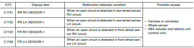 Is DTC C1101, C1102, C1103 or C1104 detected?