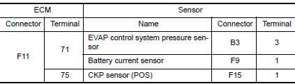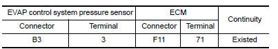 Check the EVAP control system pressure sensor. Refer to EC, "Component Inspection".