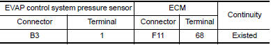 | P0452 | EVAP SYS PRES SEN (EVAP control system pressure sensor low input) | An excessively low voltage from the sensor is sent to ECM. |