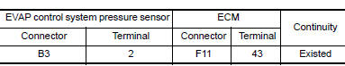 NO >> Replace EVAP control system pressure sensor. Refer to FL, "Removal and Installation".