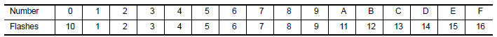 A particular trouble code can be identified by the number of fourdigit numeral flashes per the following.