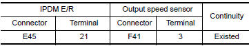 Check continuity between output speed sensor harness connector terminal and