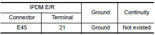 Check continuity between IPDM E/R harness connector terminal and ground.