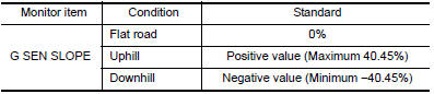 twice in the same DC: - Diagnosis conditions - While driving - TCM power supply voltage: More than 11 V - Detection condition - The G sensor detection voltage is 0.7 V or less continuously for 5 seconds or more. |