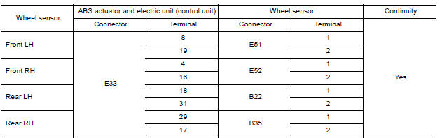 NO >> Replace the wheel sensor. Refer to BRC "FRONT WHEEL SENSOR : Removal and Installation" (front) or BRC "REAR WHEEL SENSOR : Removal and Installation" (rear).