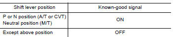 For M/T models, park/neutral position (PNP) range switch is ON when the selector lever is Neutral position.