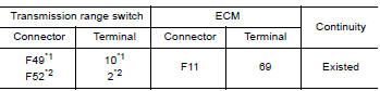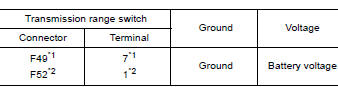 Check transmission range switch. Refer to TM, "Component Inspection (Transmission Range Switch)" (A/ T models) or TM, "Component Inspection (Transmission Range Switch)" (CVT models).