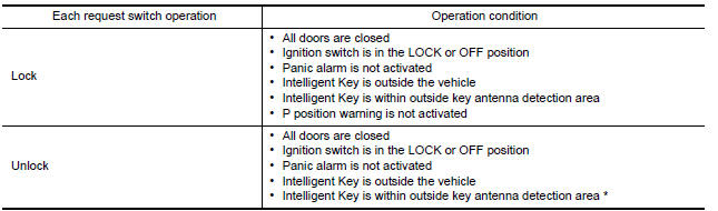 When pressing the request switch, it is possible to lock and unlock the door by carrying the Intelligent Key.