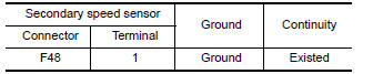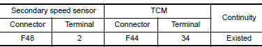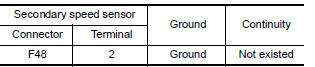 Check continuity between secondary speed sensor harness connector terminal