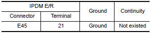 Check continuity between IPDM E/R harness connector terminal and ground.