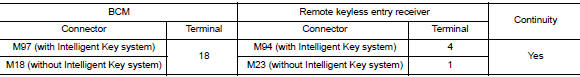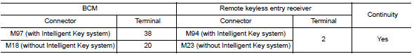 Check continuity between BCM and remote keyless entry receiver connectors.