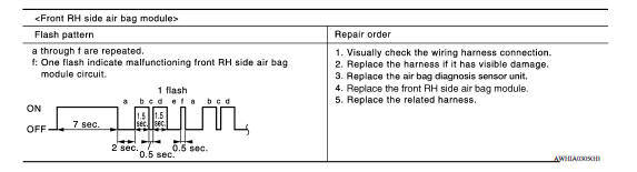 The front RH side air bag module is wired to the air bag diagnosis sensor unit. The air bag diagnosis sensor unit will monitor for opens and shorts in detected lines to the front RH side air bag module.