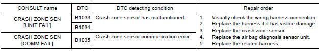 DTC B1033 - B1035 CRASH ZONE SENSOR