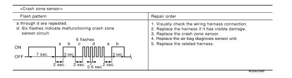 The crash zone sensor is wired to the air bag diagnosis sensor unit. The air bag diagnosis sensor unit will monitor for opens and shorts in detected lines to the crash zone sensor.