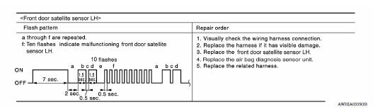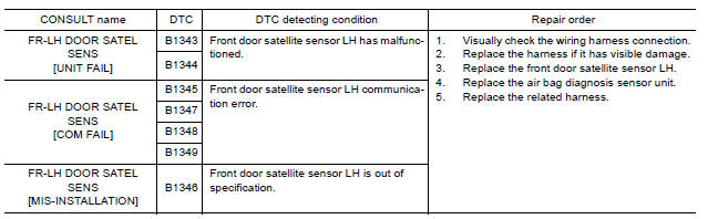 Replace the front door satellite sensor LH. Refer to SR "Removal and Installation".