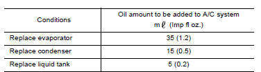 Example: oil amount to be added when replacing evaporator and liquid tank [m