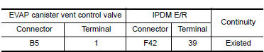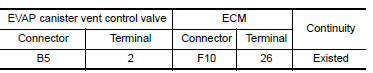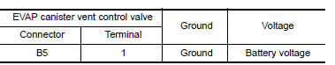 Check the EVAP canister vent control valve. Refer to EC, "Component Inspection".