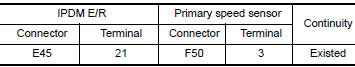 6.CHECK CIRCUIT BETWEEN IPDM E/R AND PRIMARY SPEED SENSOR (PART 1)