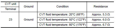 Check resistance between CVT unit connector terminal and ground.
