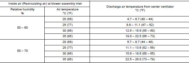 RECIRCULATING-TO-DISCHARGE AIR TEMPERATURE TABLE