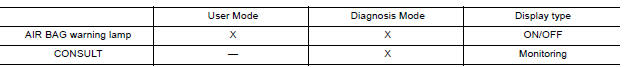 The User Mode is for the customer (driver). This mode warns the driver of a system malfunction through the the AIR BAG warning lamp.