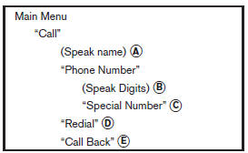 For additional information, refer to "List of voice commands" and "Special number" in this section.