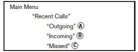 Use the Outgoing command to list the outgoing calls made from the vehicle.